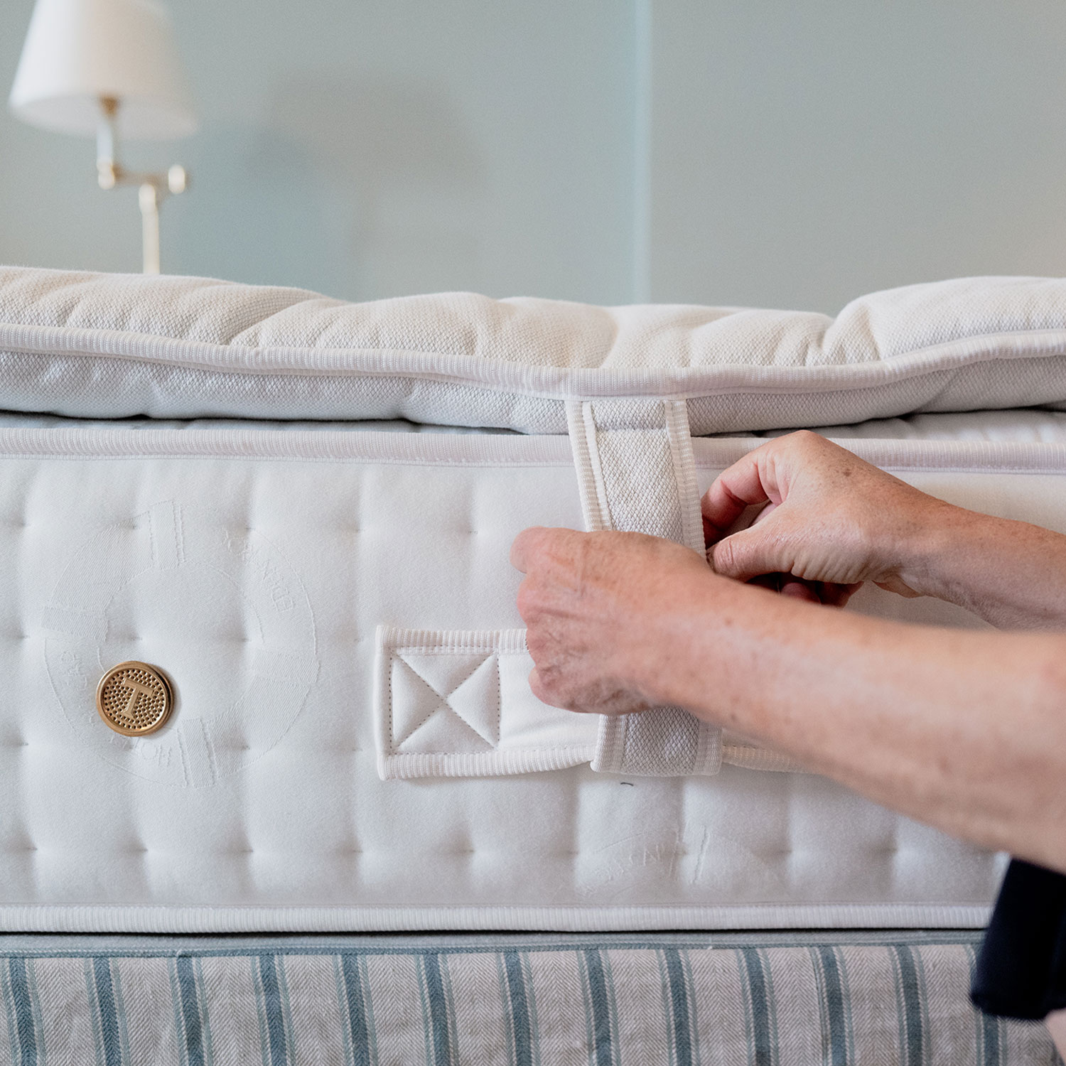 L’Hôtel du Cap-Eden-Roc et Tréca partagent une vision et des engagements plus responsables pour créer des produits plus durables. Cette collaboration est l’occasion pour Tréca d’initier une démarche innovante en recyclant 200 kg de linge de l’hôtel, transformé en feutre de 1200 gr/m² et intégré aux matelas. Cette nouvelle matière permet une économie substantielle de matière neuve, rendant le matelas plus vertueux.