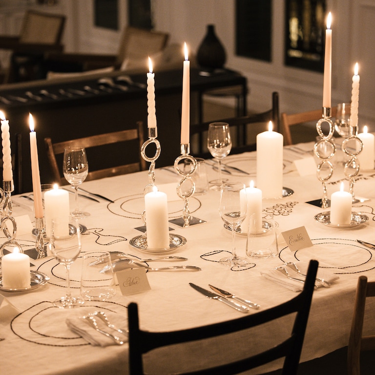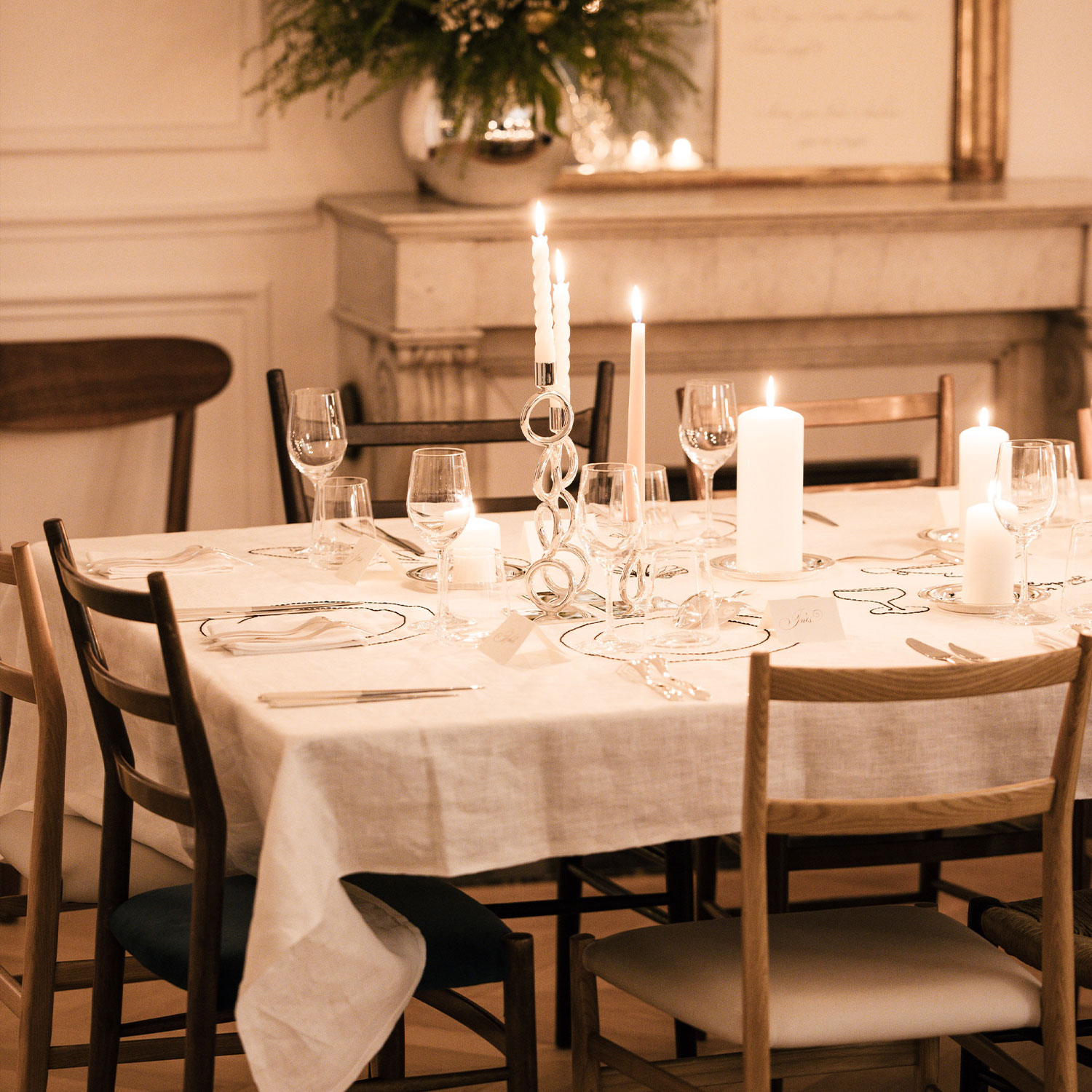 Élément incontournable, la nappe va accueillir la vaisselle que vous avez sélectionnée avec soin. L’idée ? La choisir la plus neutre possible, pour qu’elle se marie facilement avec la vaisselle. Préférez les nappes en coton épais, pour leur esprit vintage, proposées par Alexandre Turpault ou les versions plus aériennes confectionnées en lin par Caravane. Envie d’alléger l’ensemble ? Optez alors pour les chemins de table poétiques et fleuris de Lisa Corti.