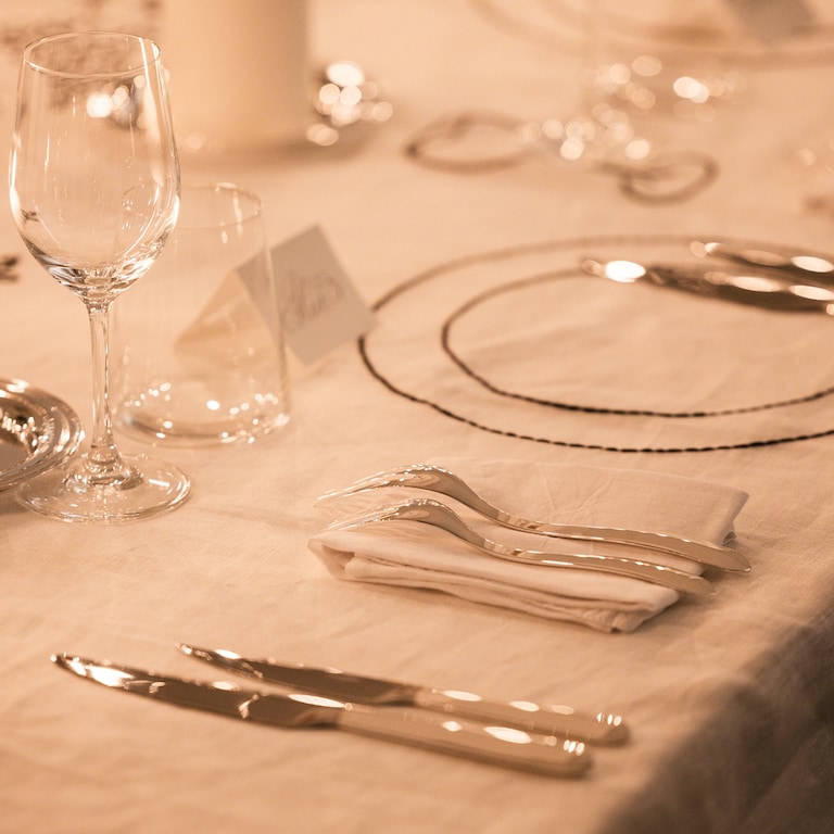La France est reconnue pour ses us et coutumes de la table. Un savoir-vivre historique qui ne doit pas vous empêcher, aujourd’hui, de laisser libre cours à votre imagination. Mais si vous souhaitez organiser une réception dans les règles de l’art, voici quelques principes simples à suivre. D’abord, la règle de trois. Disposez trois assiettes (pas plus !) par convive : une de présentation, une pour le plat principal et une (creuse) pour l’entrée. Celle à dessert n’est apportée qu’à la fin du repas. Côté couverts, il faut les placer dans leur ordre d’utilisation (ceux que l’on utilise en premier se retrouvent ainsi à l’extérieur). Quant aux verres, ils suivent un ordre précis, et sont disposés à droite de l’assiette : d’abord, les verres à eau, puis viennent ceux pour le vin et enfin les flûtes à champagne, légèrement en retrait.